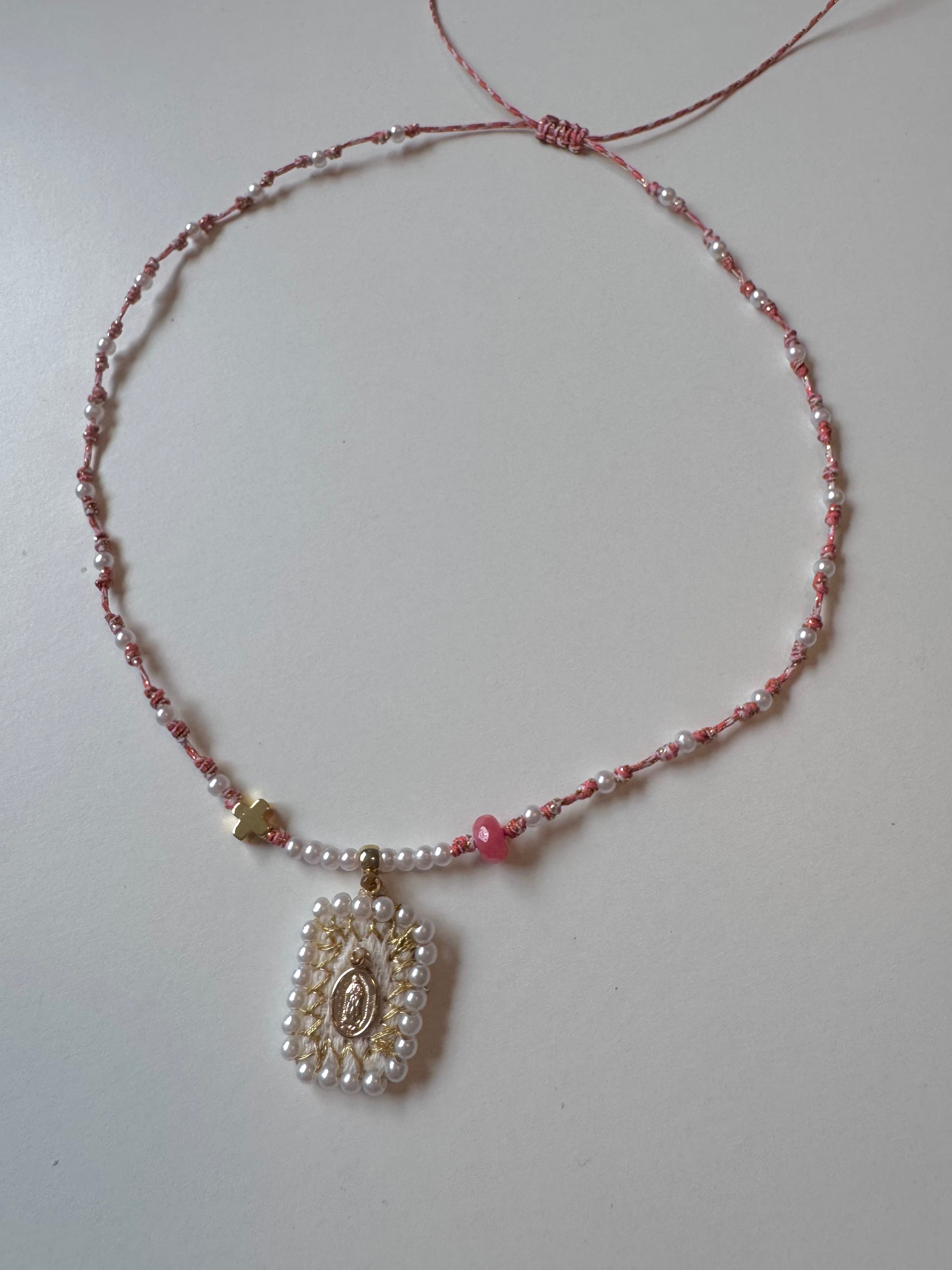 Choker ajustable con mini medalla Virgen de Guadalupe.